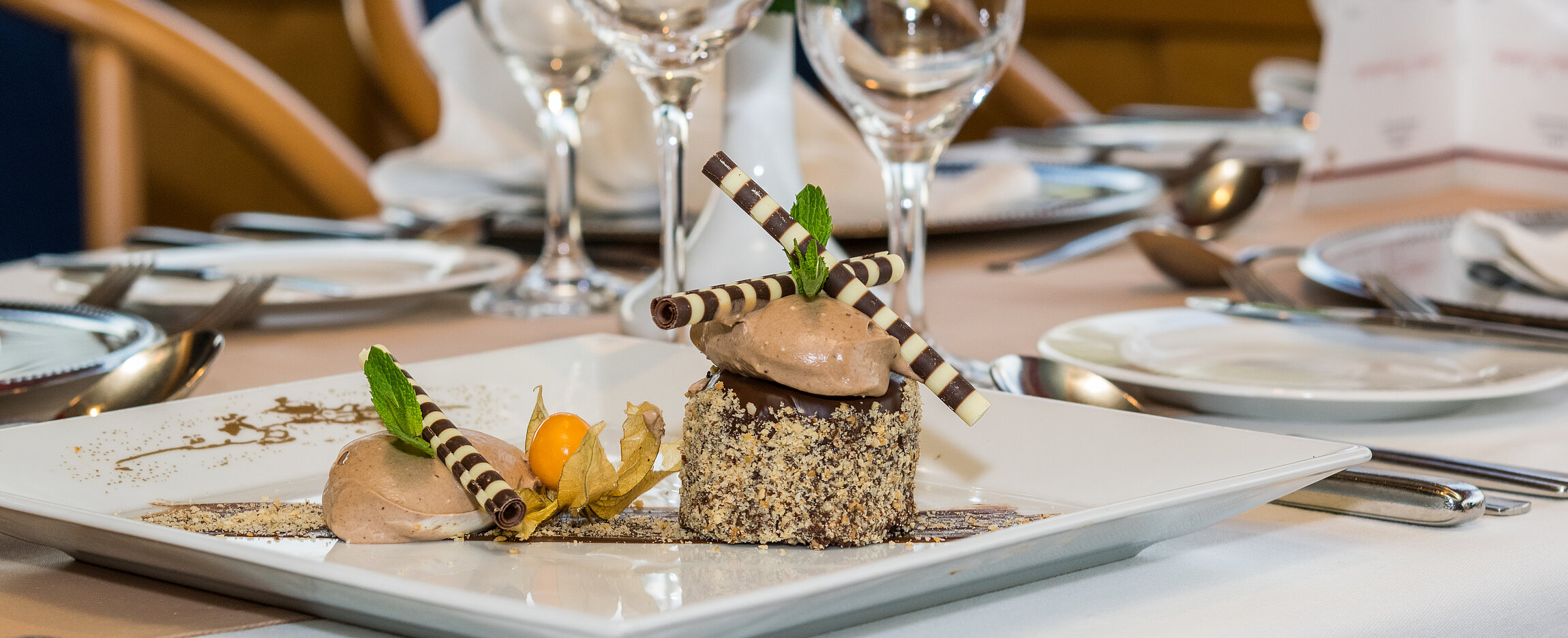 Service im Restaurant oder an der 24-Stunden besetzten Rezeption wird groß geschrieben. Täglich können Sie zwischen 2 Hauptgängen zu Mittag (3-Gang-Menü) und am Abend beim 3-/4-Gang-Menü zwischen 3 Hauptgängen wählen. Ausgiebiges Frühstück mit kalten und warmen Speisen, frisch gepressten Säften und vieles mehr erwarten Sie. Wenn mehrmals pro Woche als 5. Gang des Menüs ‚Käse vom Wagen‘ serviert wird, dann schlagen Feinschmecker-Herzen höher.