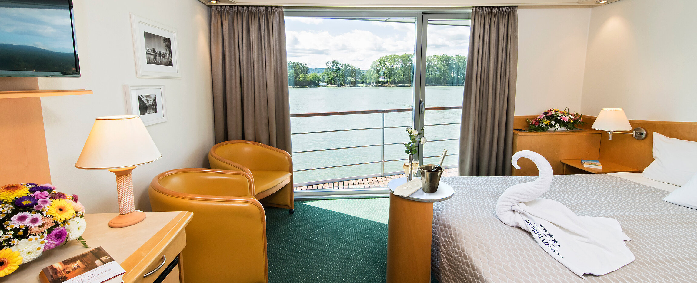 Suchen Sie aus der nachfolgenden Liste das gewünschte Geschenk aus und versehen Sie Ihr Präsent noch mit einem persönlichen Gruß. Geschenk und Kabinengruß werden dann in den ersten Tagen der Flusskreuzfahrt direkt in die Kabine geliefert. Falls Sie ein bestimmtes Datum für die Auslieferung wünschen (Geburtstag, Hochzeitstag o.ä.), können Sie auch gerne das gewünschte Datum in das vorgesehene Feld eintragen.