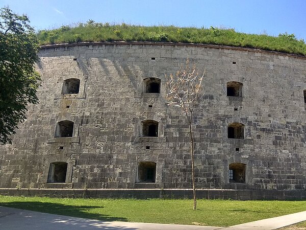 Die Festung Monostor, die größte Neuzeit-Festung Mitteleuropas, wurde zwischen 1850 und 1871 errichtet. Dieses beeindruckende militärhistorische Bauwerk aus der Zeit des Klassizismus steht auf der Anwärterliste zum UNESCO-Weltkulturerbe. Die Festung zeichnet sich durch ihre massiv aus präzise bearbeiteten Steinen errichteten Wände aus und bietet einen eindrucksvollen Anblick.