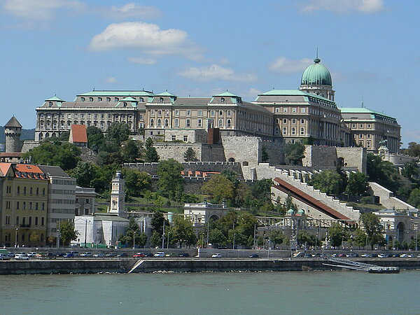 Am Südrand des Burgbergs thront der Burgpalast über der Donau und der Kettenbrücke. Der imposante Gebäudekomplex beherbergt mehrere bedeutende Institutionen, darunter die Ungarische Nationalgalerie, das Ludwig Museum, das Budapester Historische Museum und die Széchényi-Nationalbibliothek. Seit 2002 dient der Palast auch als Amtssitz des ungarischen Präsidenten.